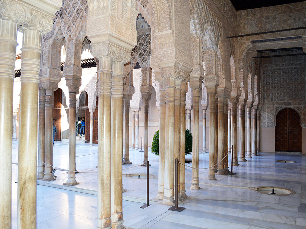 The Alhambra is located on a once inaccessible hill overlooking the city’s most ancient neighbourhoods and the valley of the River Darro. It was originally built as a fortress in 899 before being converted into a Royal Palace by Yusuf I, Sultan of Granada. Your knowledgeable guide will show you around the old fortress, known as La Alcazaba, the Royal Palace Complex with its Harem, the Court of the Myrtles with its large pond used for cooling the buildings in the summer heat, the magnificent Hall of the Ambassadors and the breathtakingly beautiful Court of the Lions and the Hall of the Abencerrajes.