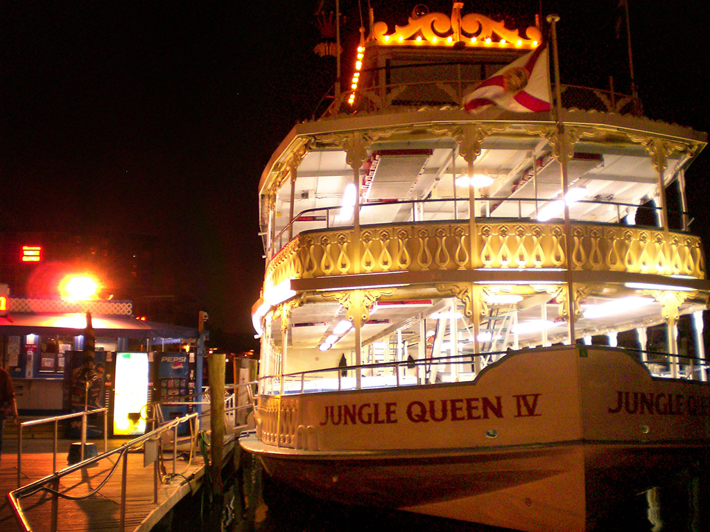 The cruise takes you to our own tropical isle where you will feast on an all you can eat rib, chicken and shrimp dinner with all the fixin'. Then, you will be treated to a laugh out loud variety show. After the show you will board the ship for a beautiful and serene ride back down the New River to the Bahia Mar Yachting Center.