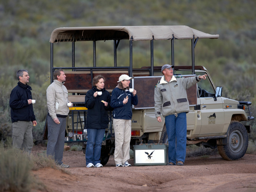 This fantastic tour is worth setting your alarm clock ready for the early start. After an early morning departure, we head up the N1 highway, through the spectacular Hex River Valley where you can admire the dramatic mountains and beautiful scenery along the way. After arriving at the Aquila Private Game Reserve, you will be welcomed with refreshing drinks before upon before heading out on your game drive.
