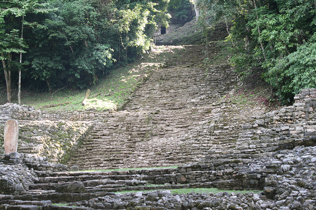 • Yaxchilán: In this Mayan site was found a huge amount of prehispanics sculptures on the bank of the wide river Usumacinta. The structure of this site is in the middle of the jungle.