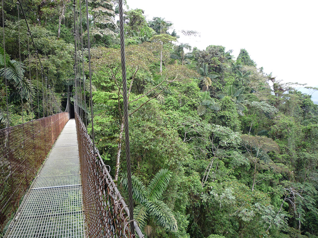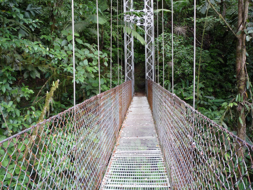 Over 2.5 km of trails through rainforest, 15 bridges from 5 to 100 m long and some over 70 m high. This trail is full of flora & fauna and amazing views of the Arenal Volcano. (Closed tennis or hiking shoes are mandatory, the park will not allow entry to the trails to those passengers who use sandals or shoes that do not fully cover their feet.)