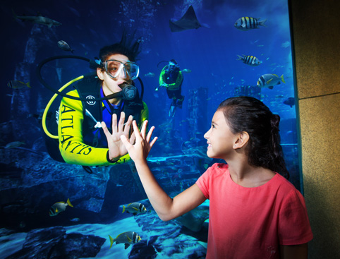The Ambassador Lagoon will mesmerize guests with a stunning array of marine life, all indigenous to this region. This remarkable exhibit provides a window into the ruins of the ancient city of Atlantis where schools of fish, silhouettes of stingrays and agile sharks glide through the relics of this ancient civilization.