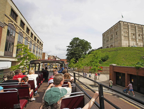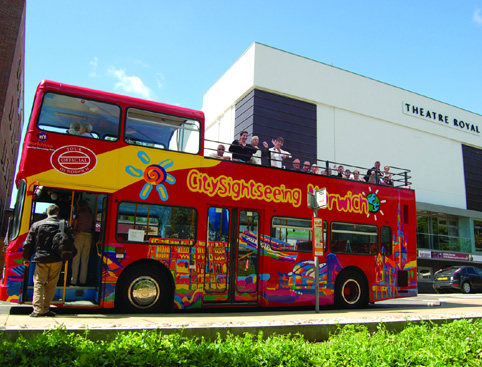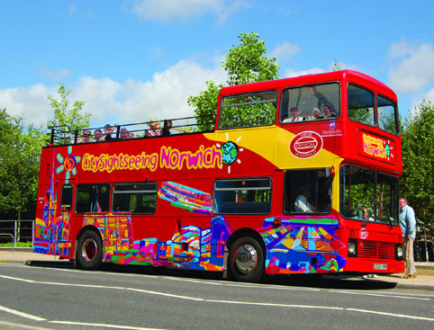 Explore the city at your leisure, allowing your City Sightseeing bus tour commentary to highlight all the attractions along the way. Hop off at The Assembly House, Norwich’s premium meeting place for dining, music recitals, jazz evenings, and banqueting. You can also admire the art exhibits displayed in the Noverre Gallery and Hobart room. While in the vicinity you will see the grand building which is the City Hall, and nearby is the magnificent Country & Eastern Gallery. Formerly a Victorian Skating Rink, this unique, listed building has been imaginatively restored and is now home to spectacular displays of an interesting range of textiles, traditional and antique furniture, ceramics and decorative objects imported from the East. Discover the history and culture of the Broads, a series of rivers and broads (lakes). Boats are available to hire and waterside pubs and restaurants line the river. Mousehold Heath is an area of heathland and woodland which is now mostly covered by semi-natural woodland, although some areas of heath remain and are actively cared for. The area presents 200 acres of woodland and open space where you will find football pitches, a pitch-and-putt course and a band stand.