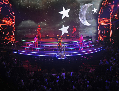 You won’t believe your eyes when you walk through the entrance of this nightlife paradise. More than 40 actors, musicians, artists and flying acrobats are here to astonish and entertain you with a world-class spectacle that never fails to bring the magic and energy of the night to life!