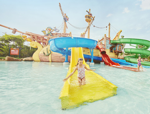 Experience with the children an incredible pirate adventure in the children’s pool that shelters a pirate ship filled with Sesame Street characters. For adults, there is a Caribbean-themed pool designed for swimming, enjoyment and relaxation.
