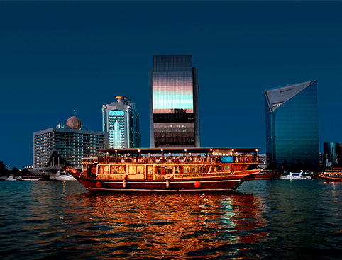 Then board a traditional wooden dhow for an unforgettable trip along the corniche a delicious onboard dinner with music and entertainment.
