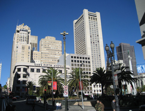 - Union Square: Major Department Stores, San Francisco Shopping Center, Crocker Galleria, Hotels, Theatres and Cable Car