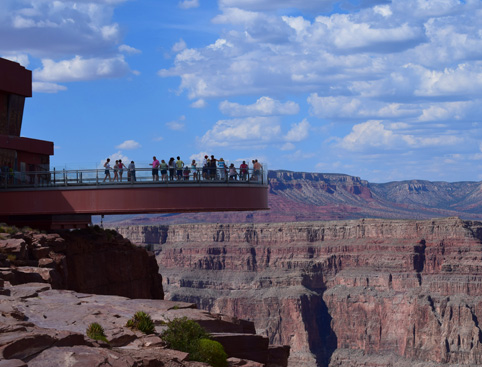 Your Airplane flight will show you views of the Hoover Dam and Lake Mead until you arrive at the Grand Canyon. The helicopter will fly you through the Canyon itself to enjoy nature’s incredible masterpiece. The walking tour will take you to views from Eagle Point where you will enjoy the views from the famous Skywalk 4,000 feet above the Canyon floor and Guano Point where you can take in 360 degree views of the Grand Canyon!