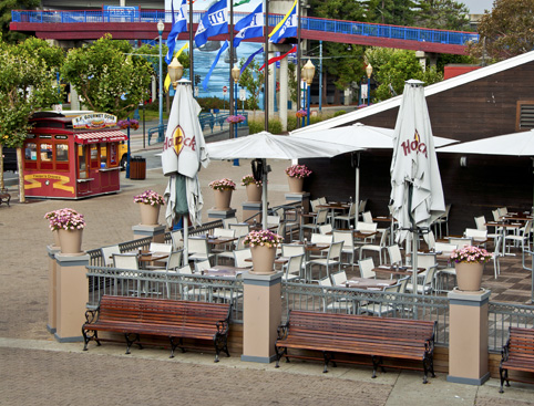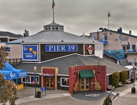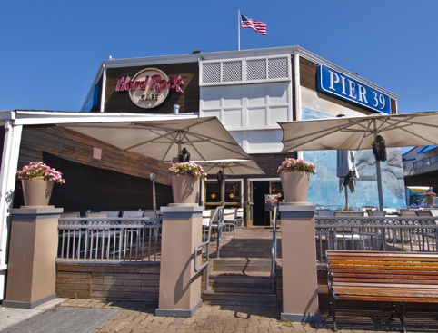 Now you can get in on big action yourself with the Cafe that's rocking San Francisco! Located at Pier 39 see fab views of Alcatraz, the Golden Gate and Bay Bridges, the San Francisco Bay, and the City skyline, not to mention more than 110 stores, 11 full-service restaurants, and numerous fun-filled attractions. You can find the 45-acre, Pier 39 complex two blocks east of Fisherman's Wharf at Beach Street and The Embarcadero. So if you're going to San Francisco, be sure to stop by the Hard Rock Cafe.
