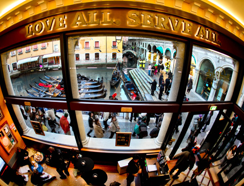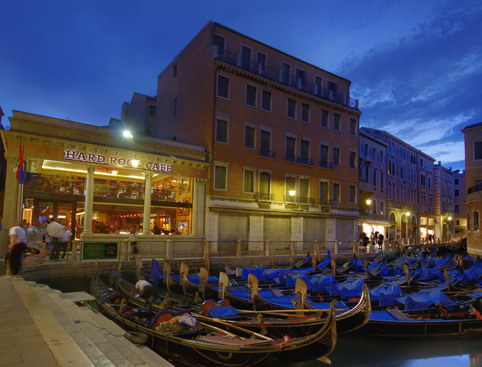 Venice, the “city of canals,” is stretched along 118 small islands in Northern Italy. The Hard Rock Cafe Venice is located directly behind the main tourist attraction of the city and one of the world’s most famous squares, St. Mark’s Square, which is home to the ornately decorated St. Mark’s Basilica and Doge’s Palace as well as a number of museums, shops, and cafes.