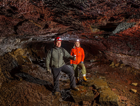 The tour takes you to the unique sight of Iceland’s most spectacular lava tube caves and craters. These beautiful, natural phenomena reveal extraordinary scenery of lava formations and colors.