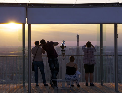 The best views of the Eiffel Tower and all of Paris from the top of the Montparnasse Tower Observation Deck. In just 38 seconds you will reach the 56th floor where Paris stretches out before you from a modern, relaxed and very comfortable setting.