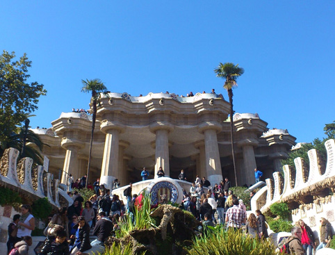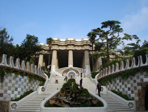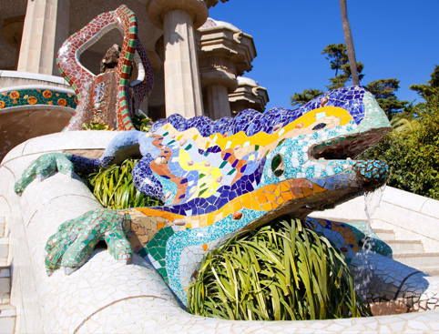 When you go to Park Güell, you will see the big staircase dominated by a dragon decorated with mosaic of ceramic tiles, the Catalan style known as “trencadís”. This dragon is one of the most characteristic images of Barcelona. Originally written Park Güell (using the English spelling), the park is arranged around a large central square bordered by a snaking, “trencadís”-covered bench. Below the square, the roof is supported by 86 Doric columns, like trees, with paths between them, and viaducts on sloping columns: Gaudí's work, like no other, unites nature and architecture.