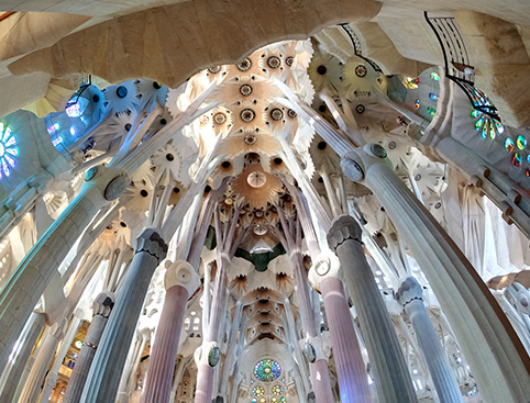 We will visit the astonishing interior of this church, where vaults reach seventy meters. Antoni Gaudí designed a Latin cross plan with five aisles, extremely rich in ornamentation and symbolism. We will also visit the Sagrada Familia museum, where you will see drawings, plaster models and pictures about the history and development of this basilica from its early beginnings to the present day. The museum will also give valuable information about Antoni Gaudi´s life and career.
