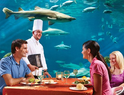 Fine-dining in the company of sharks at our full-service restaurant Sharks Underwater Grill.
