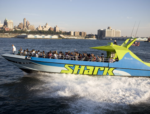 If you spot a set of giant JAWS racing across New York's harbour - don't panic, it's just SHARK, our very large speedboat.