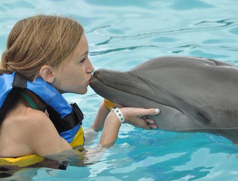 - Dolphin Interaction with Belly Ride, Boogie Push, Hug, Hand Target, Kiss, Handshake and Free time.