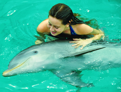 - Dolphin Interaction with Dorsal Tow, Foot Push, Handshake, Kiss, Hug, Hand Target and Free time