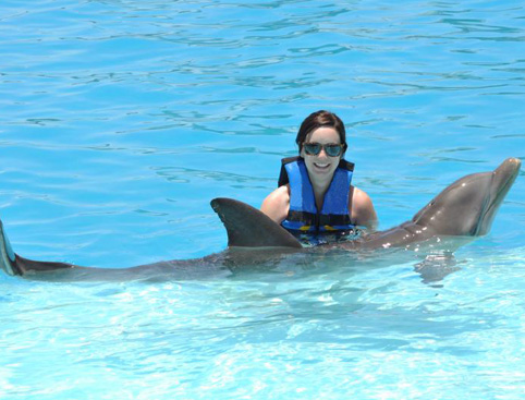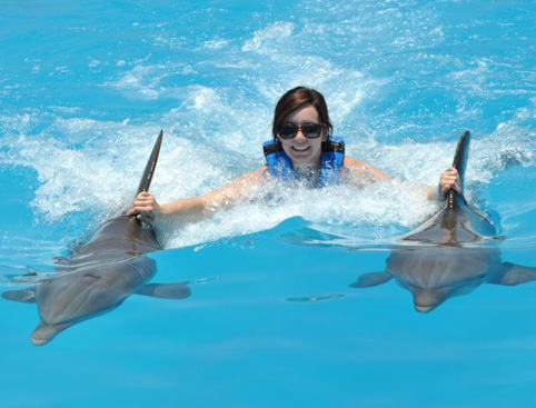 Your ticket includes a Royal Swim with Dorsal Tow, Foot Push, Handshake, Kiss, Hug, Hand Target and Free time, safety vests and round-trip transfer from selected hotels.