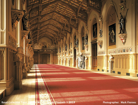 On 20 November 1992 a fire destroyed or damaged more than 100 rooms at the Castle. Four thousand gallons of water a minute were used against the blaze at the fire’s height, the equivalent of the entire weight of Niagara Falls descending on the Castle for two seconds. The restoration of the Castle, particularly St George’s Hall and the Grand Reception Room, is a testament to the extraordinary skills of some of the finest craftsmen in Europe.