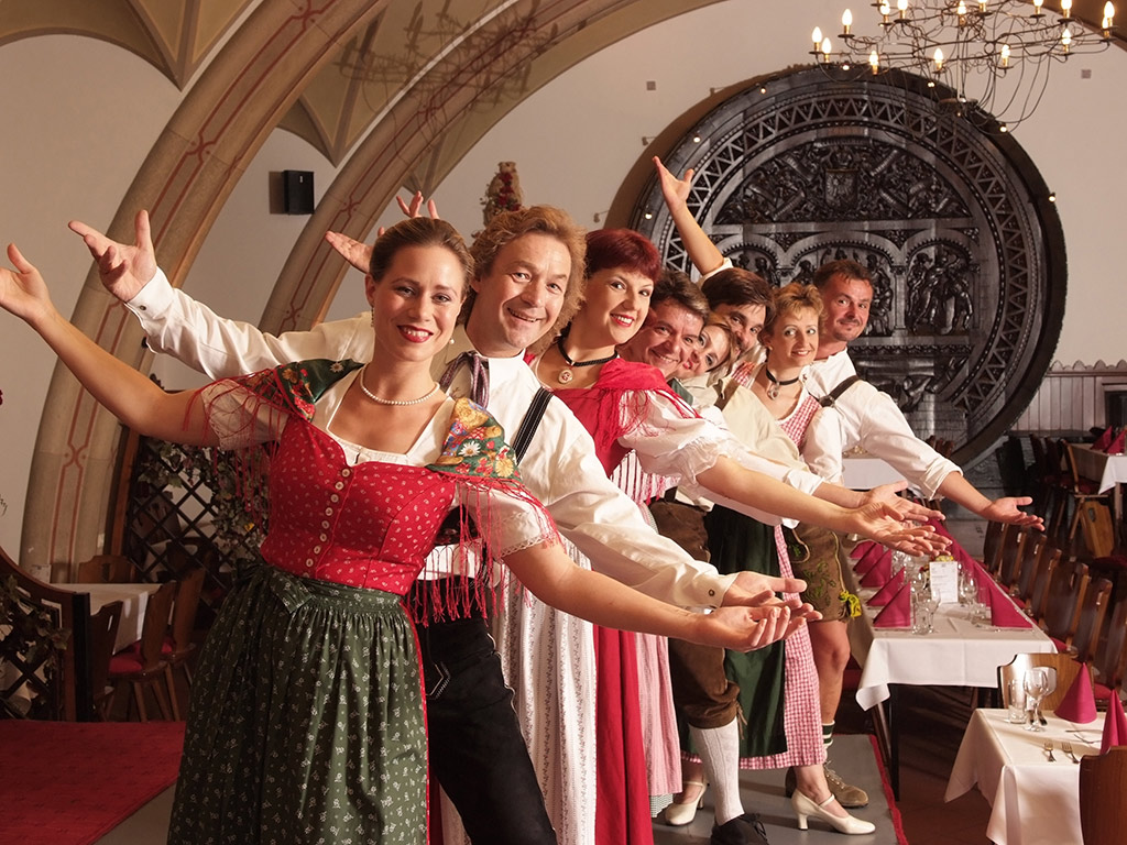 Dine while enjoying traditional folk tunes and dazzling dances, a spirited Alpine Ländler, romantic arias from Salzburg and waltzes and operettas from Vienna. Expect to hear such all-time classics as the Edelweiss from the Sound of Music and the Merry Widow as well as the greatest Waltz of all time, the Blue Danube, performed by a ballet ensemble.