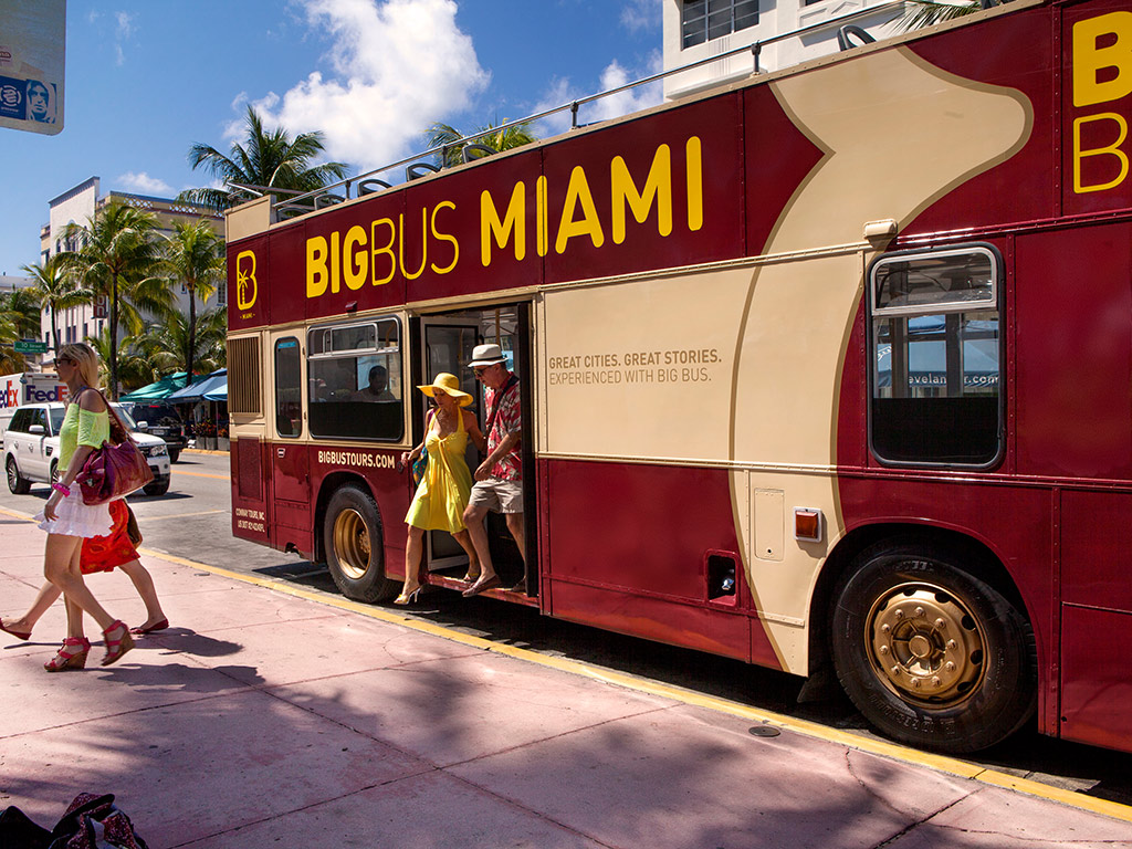 Soak up the Magic City vibe as you hop on a panoramic sightseeing tour of Miami. Create your own itinerary, explore at your own pace and fall under its spell as you visit the city´s most iconic locations such as South Beach, Coconut Grove, Little Havana and Ocean Drive. Soak up the Magic City vibe as you hop on a panoramic sightseeing tour of Miami. Create your own itinerary, explore at your own pace and fall under its spell as you visit the city´s most iconic locations such as South Beach, Coconut Grove, Little Havana and Ocean Drive. Highlights- Create your own itinerary and enjoy unlimited travel - See Miami´s most iconic attractions and locations - Discover the city at your own leisure The Big Bus sightseeing tour of Miami has been specifically designed to show you the best that Miami has to offer. You can enjoy it all from the comfort and great vantage point of an open-top bus, or hop off wherever you wish to explore the places that intrigue you most before hopping back on to continue your journey.