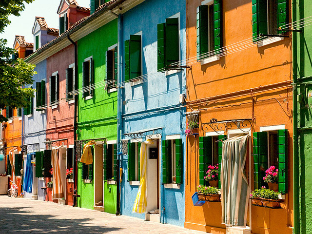 Then back to the boat and off to our next stop, Burano, a tiny picturesque island famous for its coloured houses and its centuries-old tradition of lace-making. Huddled tightly together along streets and canals, each house is painted a different colour. Legend has it that fishermen started this trend, painting their houses in bright shades so that they could distinguish it from a distance.