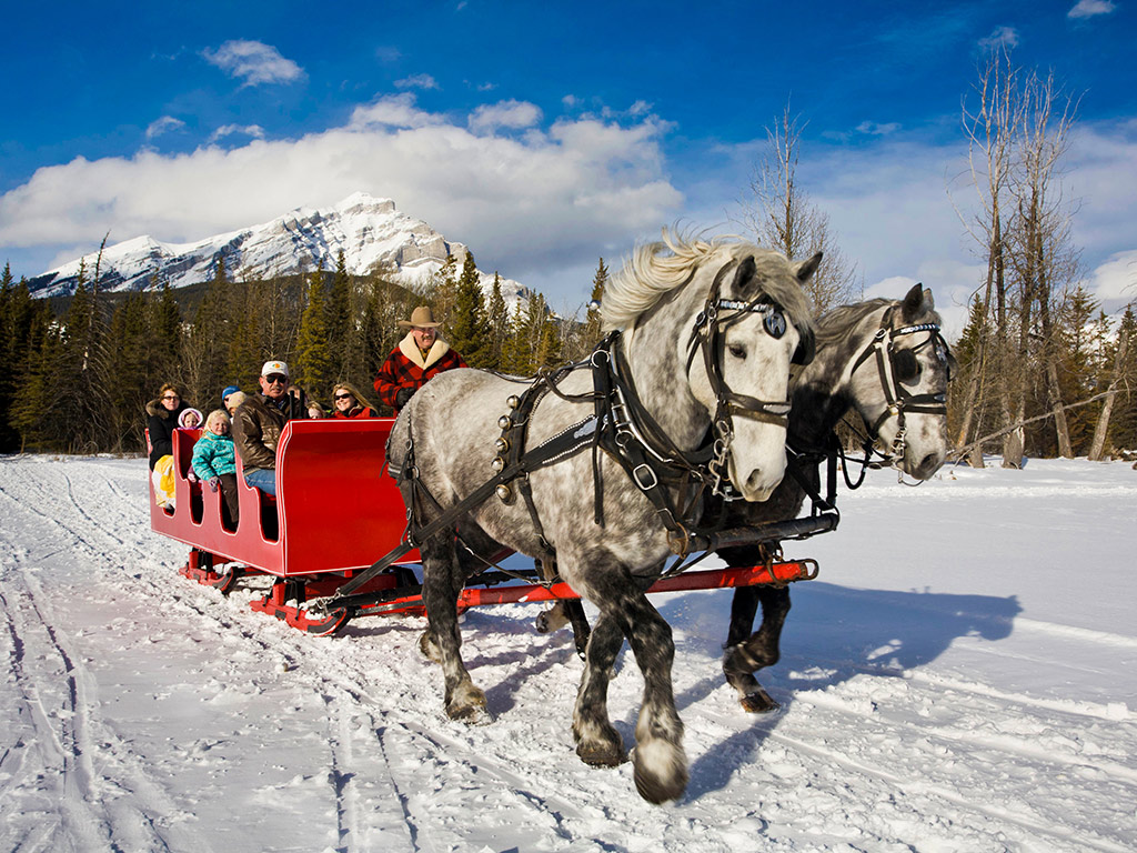 Join us on a sleigh ride with your family, friends or loved ones. Relax and take in the breathtaking views and sparkling winter air of the Canadian Rocky Mountains. The sleigh ride will take you through the Bow River Valley showing you the remote areas around Banff, western style! Join us on a sleigh ride with your family, friends or loved ones. Relax and take in the breathtaking views and sparkling winter air of the Canadian Rocky Mountains. The sleigh ride will take you through the Bow River Valley showing you the remote areas around Banff, western style!Join us on a sleigh ride with your family, friends or loved ones. Relax and take in the breathtaking views and sparkling winter air of the Canadian Rocky Mountains. The sleigh ride will take you through the Bow River Valley showing you the remote areas around Banff, western style!