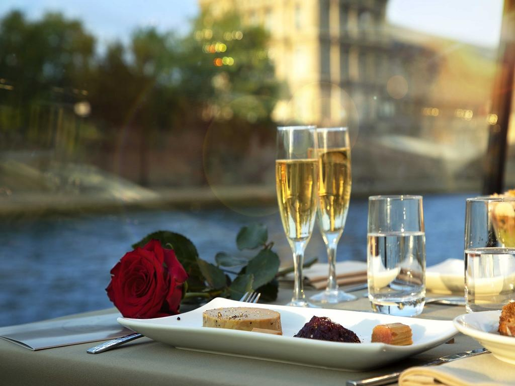 Indulge yourself with an evening of sightseeing, dinner and music on the River Seine. Indulge yourself with an evening of sightseeing, dinner and music on the River Seine.Highlights- Delight in a delicious French meal with ever-changing views as you cruise along the river - See Paris sparkling by night - Be serenaded by the live music accompaniment Small intimate tables set beside panoramic windows, the lights of Paris reflected in the rippling water of the river Seine, the wonderfully romantic and ornate bridges lit up against the night sky, the rhythm of the live music and the flavours of French cuisine, these form the ingredients of a wonderful evening.