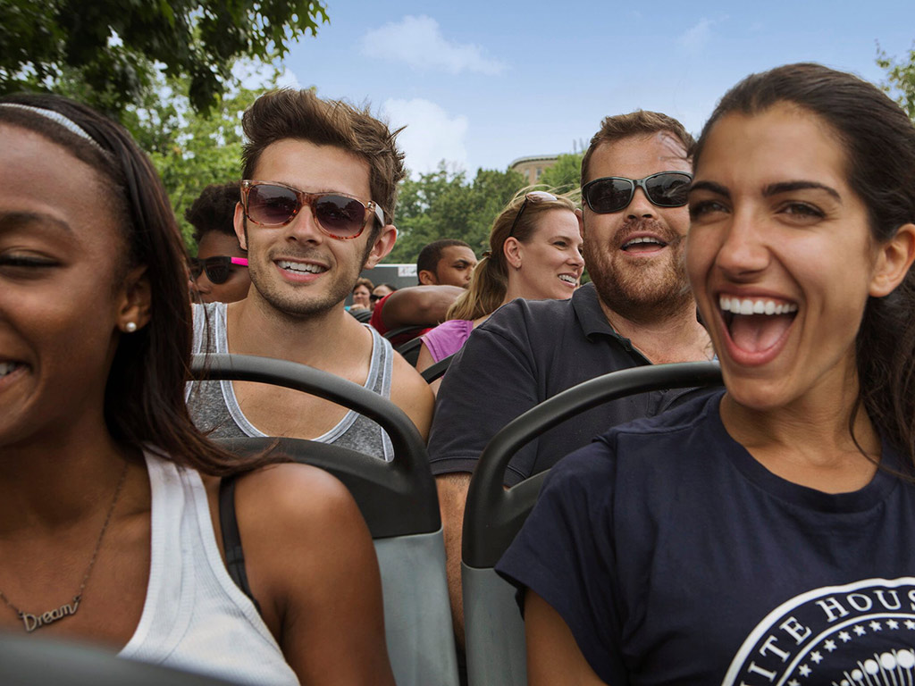 Experience Washington DC's most famous landmarks and attractions with Big Bus Tours. You'll enjoy unique, top-deck views of the capital's best sights, including the White House, Capitol Hill, Jefferson Memorial, Smithsonian Castle, and many more. Experience Washington DC's most famous landmarks and attractions with Big Bus Tours. You'll enjoy unique, top-deck views of the capital's best sights, including the White House, Capitol Hill, Jefferson Memorial, Smithsonian Castle, and many more.Highlights- Create your own itinerary and enjoy unlimited travel - Discover the most iconic landmarks of America's capital - Learn about the city's fascinating history thanks to the onboard audioguide Discover the fascinating history of Washington DC, as you journey past some of the USA´s most important landmarks.