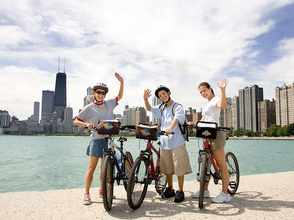 The perfect way to explore Chicago is on a bike and here you can rent a bike and make your own itinerary to explore this famed city. Chicago was voted the number 1 bike-friendly city in the US and its magnificent lakefront boasts 18 miles (28km) of paths. The amazing lakefront and parks, the rich history and spectacular architecture all combine to provide a great biking experience. Do The perfect way to explore Chicago is on a bike and here you can rent a bike and make your own itinerary to explore this famed city. Chicago was voted the number 1 bike-friendly city in the US and its magnificent lakefront boasts 18 miles (28km) of paths. The amazing lakefront and parks, the rich history and spectacular architecture all combine to provide a great biking experience. DoThe perfect way to explore Chicago is on a bike and here you can rent a bike and make your own itinerary to explore this famed city. Chicago was voted the number 1 bike-friendly city in the US and its magnificent lakefront boasts 18 miles (28km) of paths. The amazing lakefront and parks, the rich history and spectacular architecture all combine to provide a great biking experience. Do it your way at your own pace, exploring the sights of interest to you. There are a variety of different bikes to choose from including cruiser or mountain bikes and wagons to carry children or ‘tagalongs’ for the younger rider. You can even hire tandem and quad cycle bikes as well as electric bikes for those wishing an easier ride. With hardly a hill in sight, biking around Chicago is really not a very strenuous exercise but more a pleasant cruise. Explore all the top attractions with sights such as: the Chicago Lakefront, Navy Pier, North Avenue Beach, Lincoln Park Zoo and the Conservatory, Grant Park, Buckingham Fountain, Millennium Park, and the Museum Campus (including Soldier Field, the Shedd Aquarium, the Field Museum, and the Adler Planetarium). Maps for various rides are available including: Chicago Lakefront, Wrigleyville & Andersonville, Bucktown & Wicker Park, Lincoln Square, Obama, Hyde & Jackson Parks and Greektown, Chinatown & Little Italy. The options are endless so it really is up to you how you explore this fascinating city.