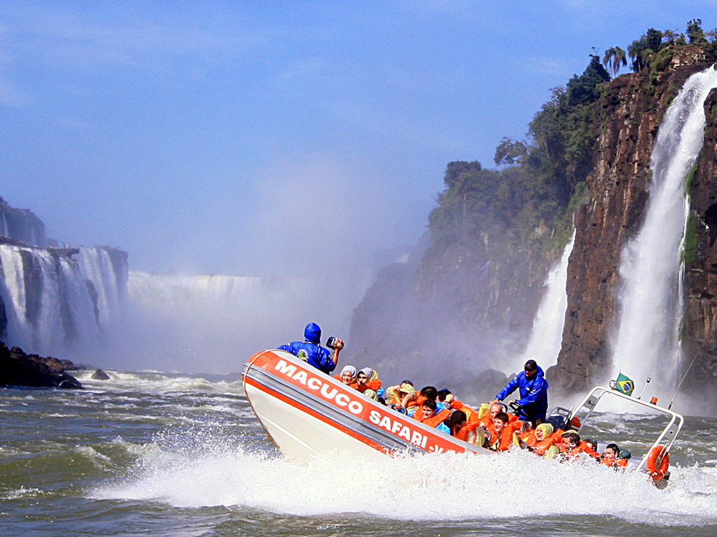 The excitement begins on a Jeep-towed open wagon trail through 3km of the Iguazu National Park, where you will see canyons, wild animals and a spectacular view of the falls.