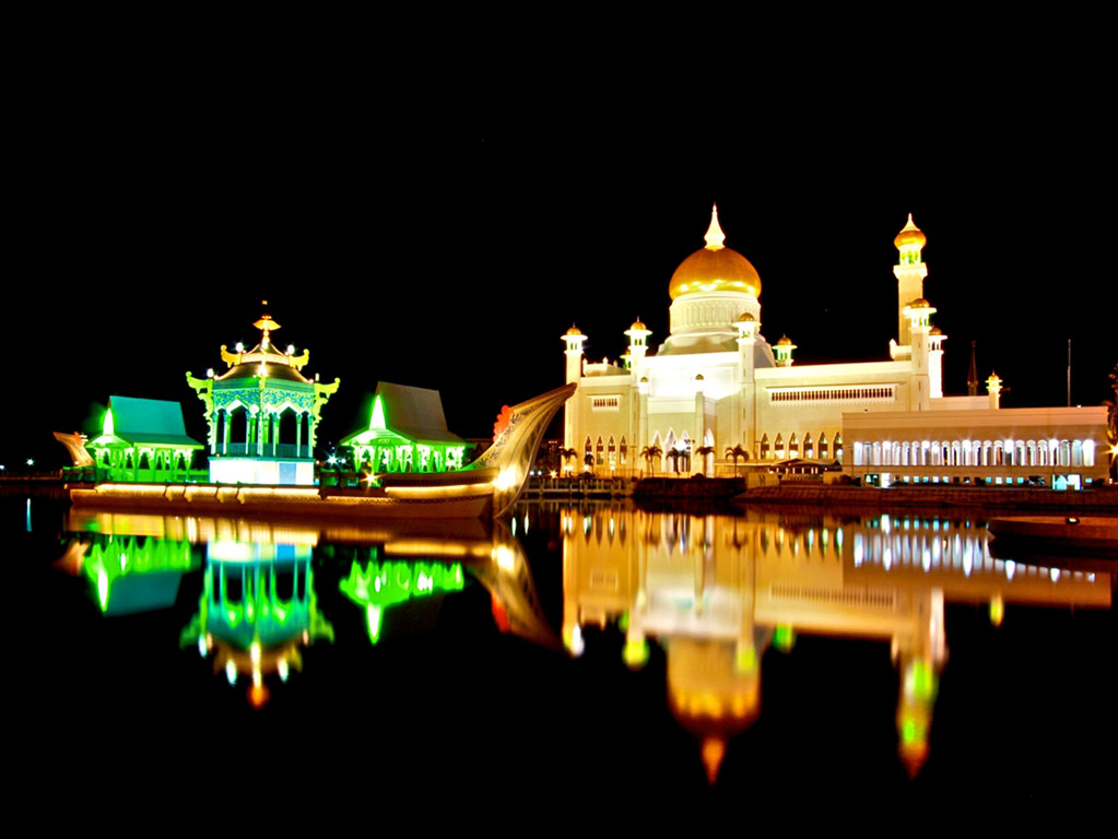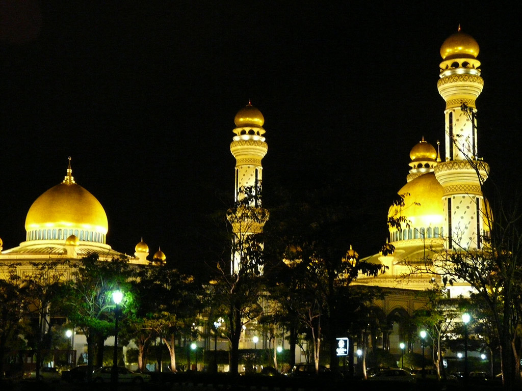 • Jame Asr Hassanil Bolkiah Mosque - with the floodlight on at night, it allows the true colors of the mosque to really shine