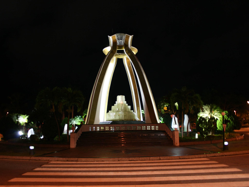 On the way back to the hotel, photo stop at the Diamond arch – guarding the entrance to Brunei’s Jerudong Park, the Crystal Arch is the world’s largest diamond replica. This soaring monument is the length of a city block and weighs an estimated seven tons, its columns decorated with millions of tiny gold mosaic tiles.