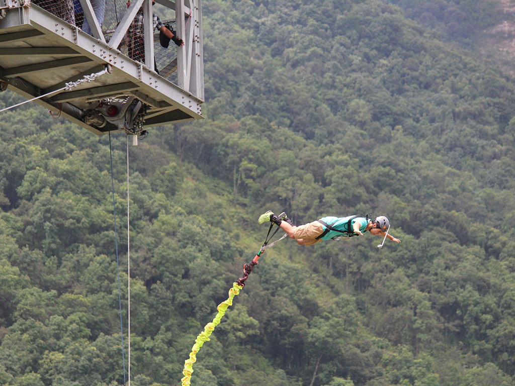 In Bungee Jump in Pokhara, you will jump from a height of 80 meters (50m high cliff plus 30m high tower). As you jump you will experience the thrilling and exciting 3-second free fall.