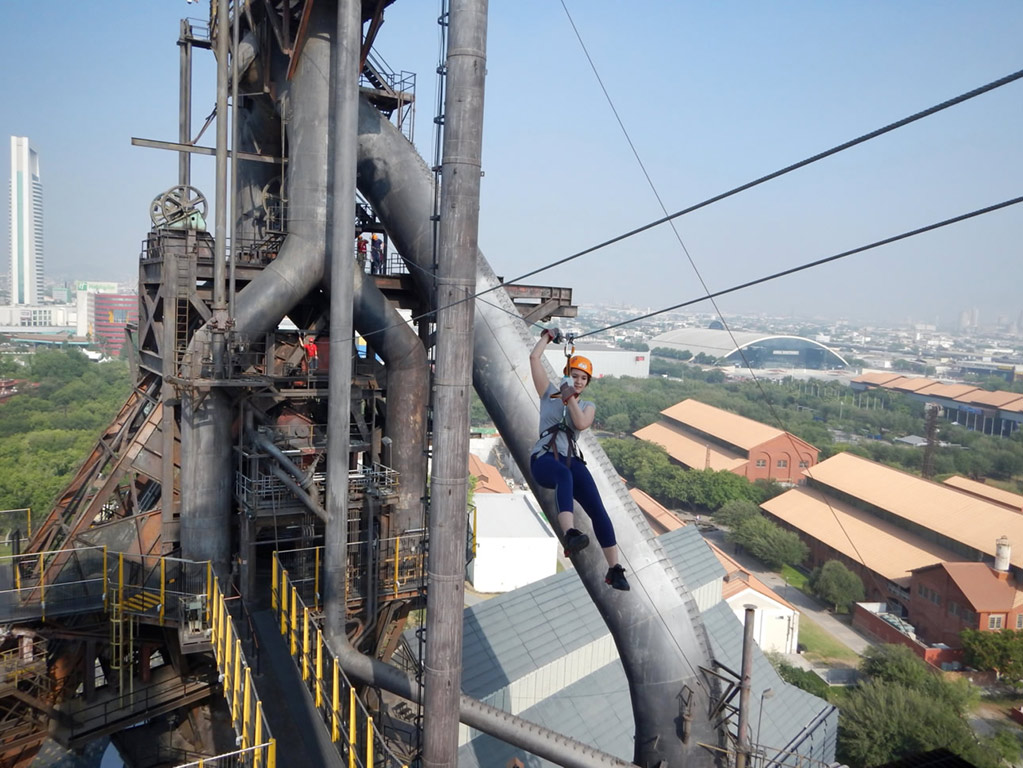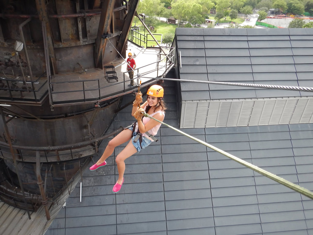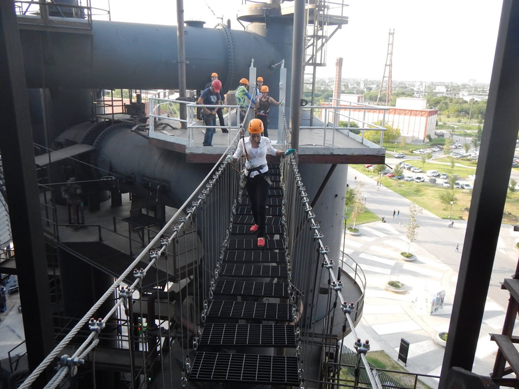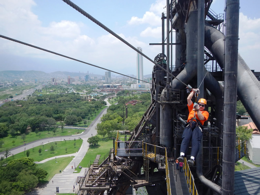 This is a fun experience located on the premises of the Museo del Acero, Horno3 inside the Fundidora Park. On this tour we climb in the freight elevator and the stairs to the top of Horno3 to 70 meters high, from here began the journey through zip lines, rappelling and a suspension bridge, with the help of a special harness, a pulley and safety helmet. Ideal for families, groups of friends and companies seeking integration. This is a fun experience located on the premises of the Museo del Acero, Horno3 inside the Fundidora Park. On this tour we climb in the freight elevator and the stairs to the top of Horno3 to 70 meters high, from here began the journey through zip lines, rappelling and a suspension bridge, with the help of a special harness, a pulley and safety helmet. Ideal for families, groups of friends and companies seeking integration.This is a fun experience located on the premises of the Museo del Acero, Horno3 inside the Fundidora Park. On this tour we climb in the freight elevator and the stairs to the top of Horno3 to 70 meters high, from here began the journey through zip lines, rappelling and a suspension bridge, with the help of a special harness, a pulley and safety helmet. Ideal for families, groups of friends and companies seeking integration.