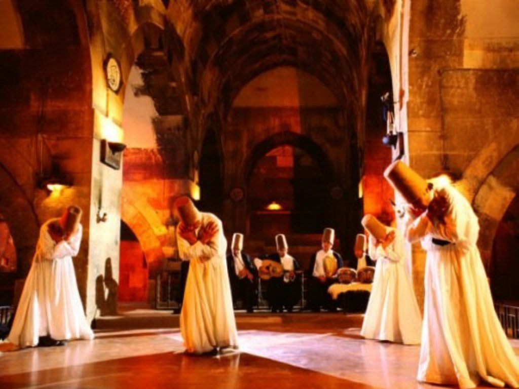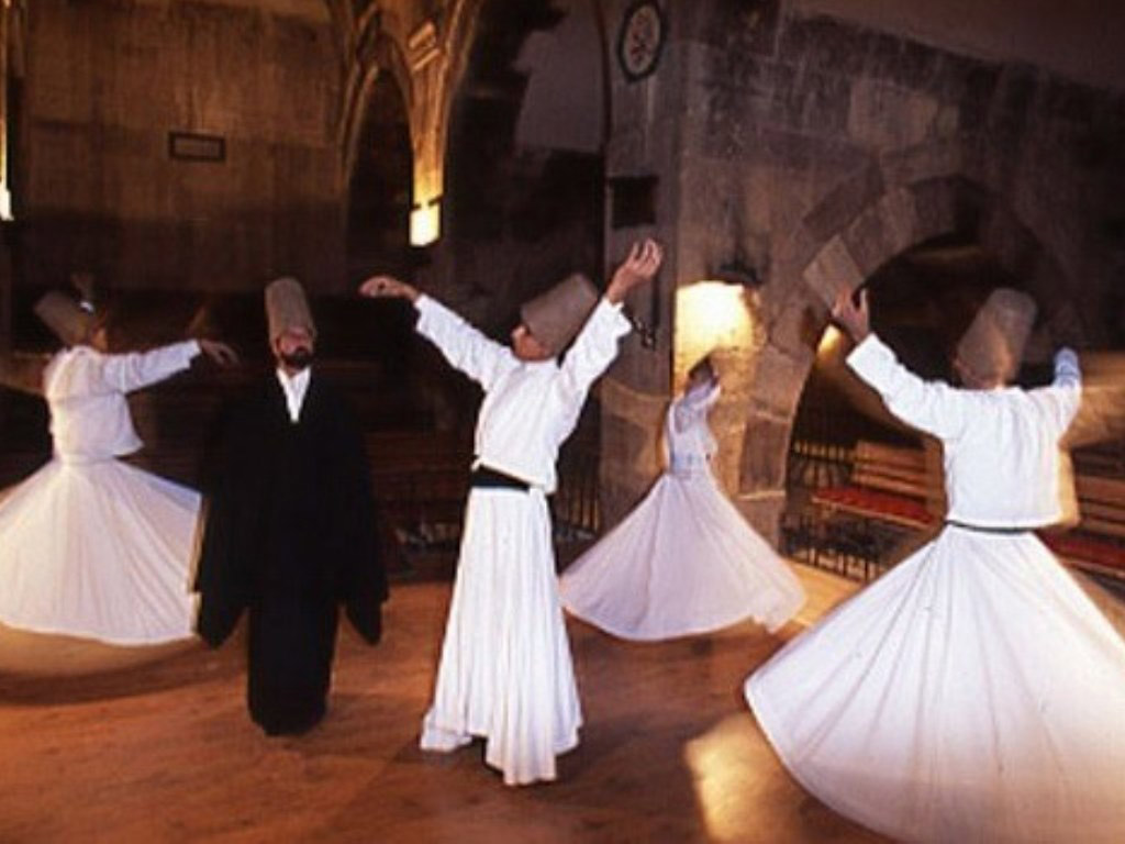 You will witness Sema, a ceremony representing the mystical journey of man's spiritual ascent through love and his search for truth and perfection. Turning towards the truth, a dervish grows through love, deserts his ego, finds the truth, and arrives at Perfection. The he returns from this spiritual journey as a man who reached maturity and a greater perfection, so as to love and to be of service to all of creation, and to all creatures without discriminating in regard to belief, class, or race. The dervishes, with their head-dresses and white skirts are spiritually born to the truth by removing their black cloaks, and they journey and advance to spiritual maturity through the stage of the Sema ceremony.