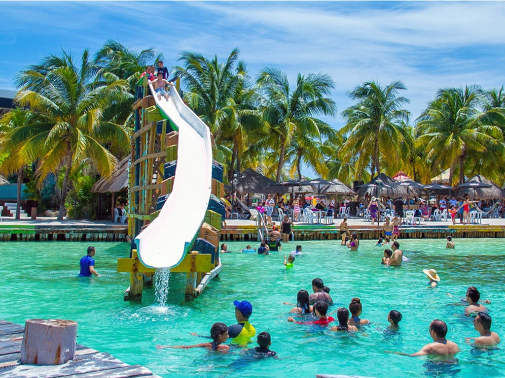 Buffet lunch, snacks, lockers, towels, drinks (open bar), guided tour to the turtle farm, kayacks, encounter with the cat shark, bicycle tour, snorkel tour, access to the Huracan and Torbellino slides and visit to the center of Isla Mujeres.