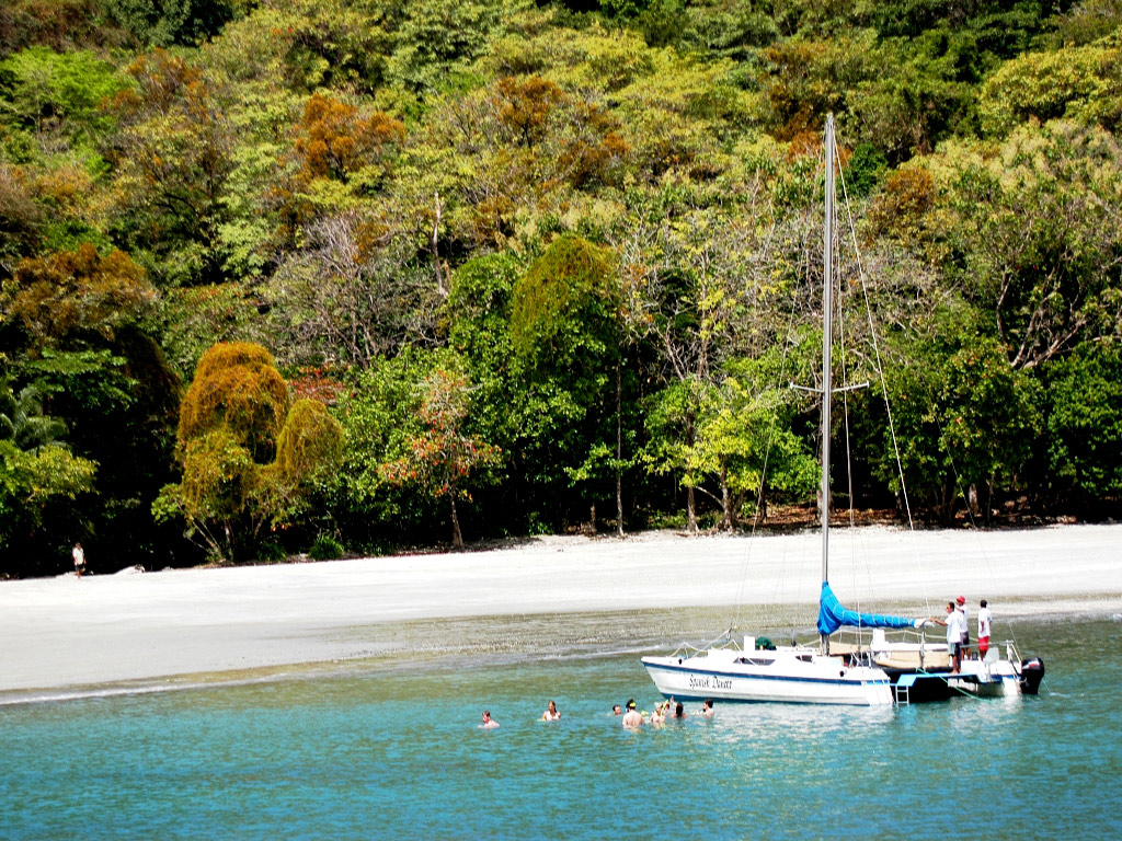 Transportation will be provided by your tour operator to pick you up from your hotel. You will travel approximately 20 minutes to the Quepos dock. A guide will take you to the loading platform and help you board the catamaran. You will set sail towards the horizon and cruise over sapphire hued waves. The catamaran will chart a picturesque course departing from Quepos gliding around the back of Manuel Antonio national park. Your guide will point out notable wildlife and vegetation specimens, so be sure to have your camera ready. You will pass by panoramas adorned with islands, cliffs and rock formations. You can admire aviary nesting grounds and marine wildlife. Beverages and snacks are available onboard the catamaran throughout the trip. After touring the coastline, your captain will set anchor on Bisanz beach where you can take advantage of the pit stop to snorkel at this secluded bay. You are most likely to spot parrotfish, starfish, angelfish and if you are lucky a dolphin! During your chartered course you will be able to savor a tasty barbeque lunch onboard the catamaran while admiring the lovely waterscapes. You will then head back to the dock where there will be transportation waiting to take you back to your hotel. This Manuel Antonio tour does not require previous experience. Water visibility varies depending on the season.