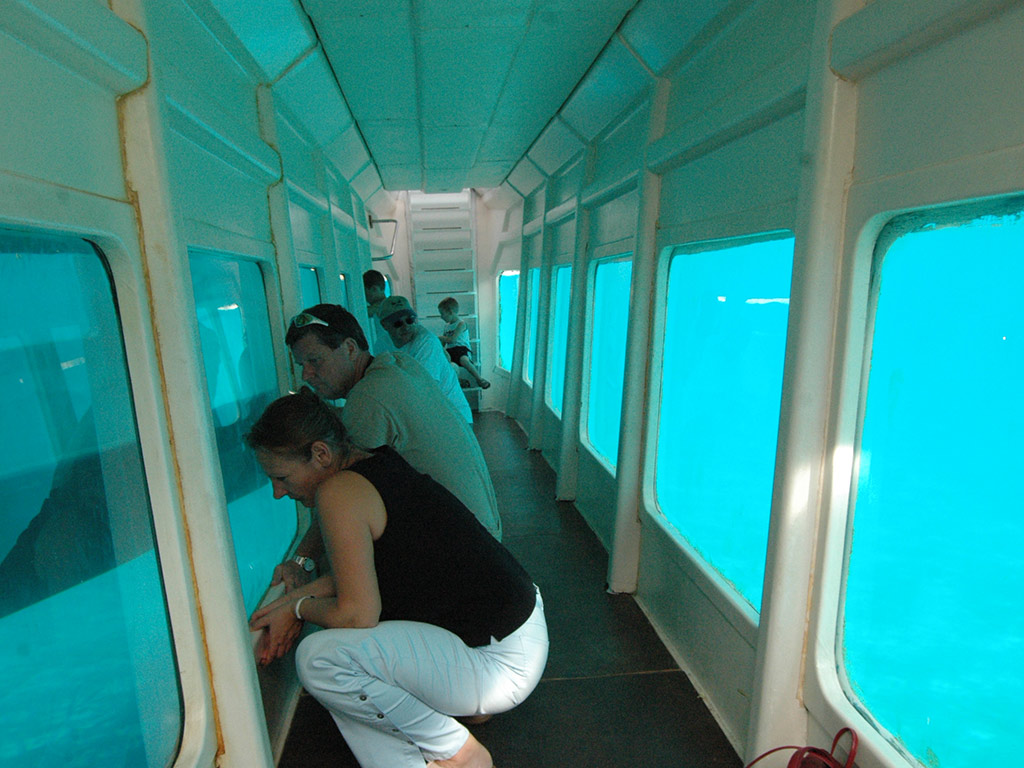With a double-sided gallery in each hull, there are enough windows for all to see the abundant fish in the waters. The main deck is equipped with a bar, toilets and an entertainment area. The upper deck provides a spacious solarium, ideal for sunbathing and sightseeing while the lower deck is semi-submerged for underwater viewing.