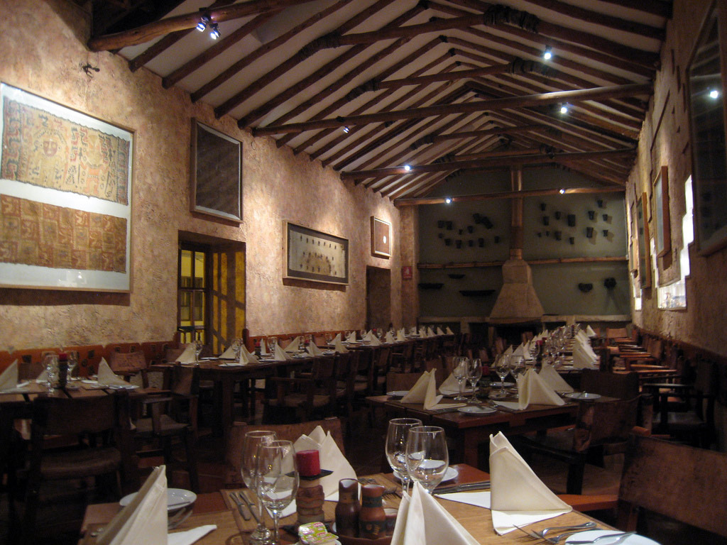 The restaurant is tastefully and atmospherically decorated in beautiful Andean textiles, which adds to the sense of expectation. The dishes on offer during the buffet change according to the season but among the many Peruvian specialities that you may find are mint potatoes, tacu tacu (pan-fried rice and beans) and butifarra (bread stuffed with ham) as well as trout ceviche and alpaca carpaccio. The desserts are delicious and this being Peru, sipping on a pisco sour is almost compulsory (the national cocktail made of pisco, lime or lemon juice, syrup and egg whites).