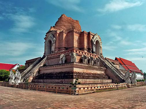 Also visit Wat Chedi Luang, this large Buddhist temple in the heart of Chiang Mai is one of the city’s most famous locations. The enormous crumbling chedi built in 1441 is surrounded by striking elephant and serpent statues. These snake-like animals are known as nagas: mythical creatures who guard temples of great value!