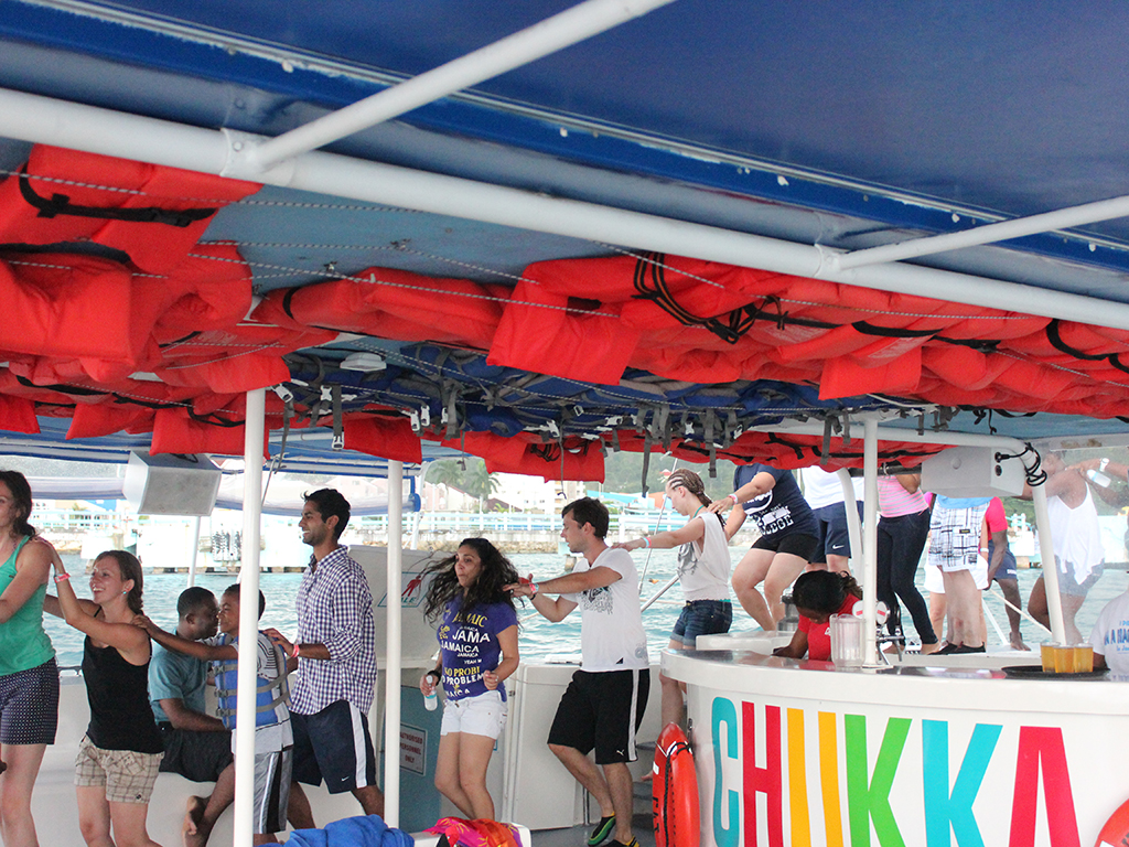 Then, you’ll arrive at a beautiful beach where the world-famous Dunn’s River Falls meets the sea. Here you will have the opportunity to climb six hundred feet of natural cascading water. Once you think you’ve done it all, we climb back aboard for a return trip you will never forget.