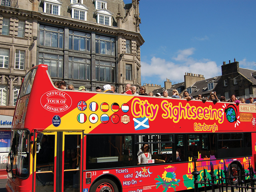 Explore the capital of Scotland as you discover the beautiful and historical city of Edinburgh at your own leisure on a City Sightseeing bus tour. Explore the capital of Scotland as you discover the beautiful and historical city of Edinburgh at your own leisure on a City Sightseeing bus tour.Highlights- Unlimited Hop-on, Hop-off access - 360° panoramic views from the top-deck - Audio guide available in 10 languages If you are looking to see the sights of Scotland´s capital, choose this hop on - hop off tour which gives you complete flexibility to get on and off as many times as you want, providing you the opportunity to explore both historic and modern Edinburgh at your own pace!