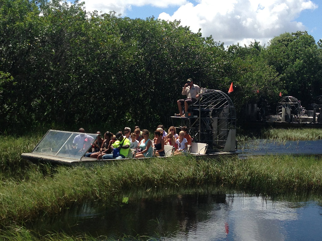 Following, we are heading to this unique natural wonder of "The Never-Ending River of Grass", the Florida Everglades. The National Park of the Everglades is made up of 1.2 million acres of grassland. You will enjoy an exhilarating ride aboard a flat propelled airboat gliding atop the shallow surface of the water while being given a full narration from the airboat captain-guide. Within this preserved wilderness you will see breathtaking panoramic views, lush vegetation, and feel the beautiful tranquility of nature. A paradise of birds, fish, tortoises, alligators, and other wildlife will surround you.