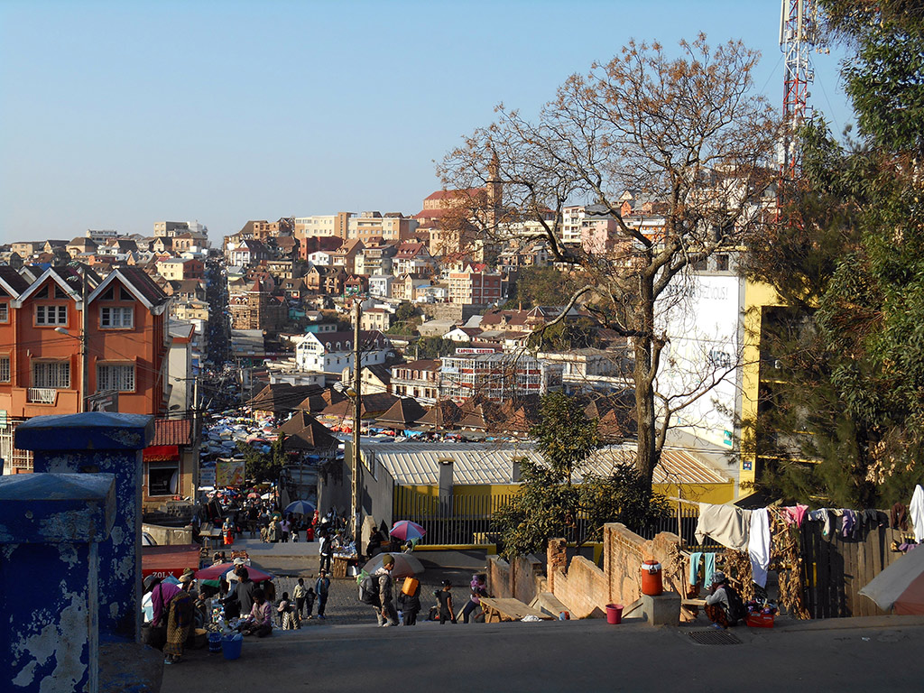 Antananarivo, the capital of Madagascar is divided into three levels: the downtown where is the lake Anosy and its monument in the middle of the waters, the intermediate level where boutiques and Shops abounds and the old city in upper town (“La Haute ville”) where Palaces the Queen's palace, the ancient Prime Minister Rainilaiarivony palace, ancient Justice palace, cathedrals and the residential area ancient noblemen families worth a visit.