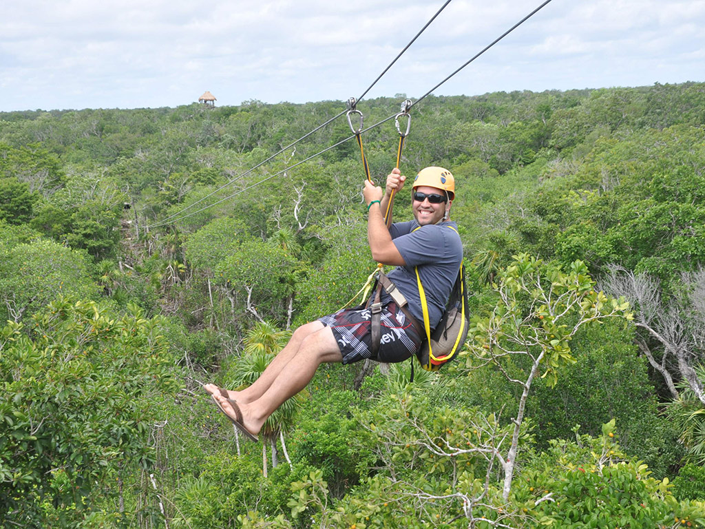 Then after visiting the site, you'll head to a local restaurant for an authentic Yucatan-style lunch. Afterwards, we'll stop at an authentic Mayan community where you'll get to meet the locals. Here you'll learn all about local traditions, culture and history directly from the village people. We'll also stop for a dip at a fresh-water cenote and you can also soar over the treetops on a zipline.