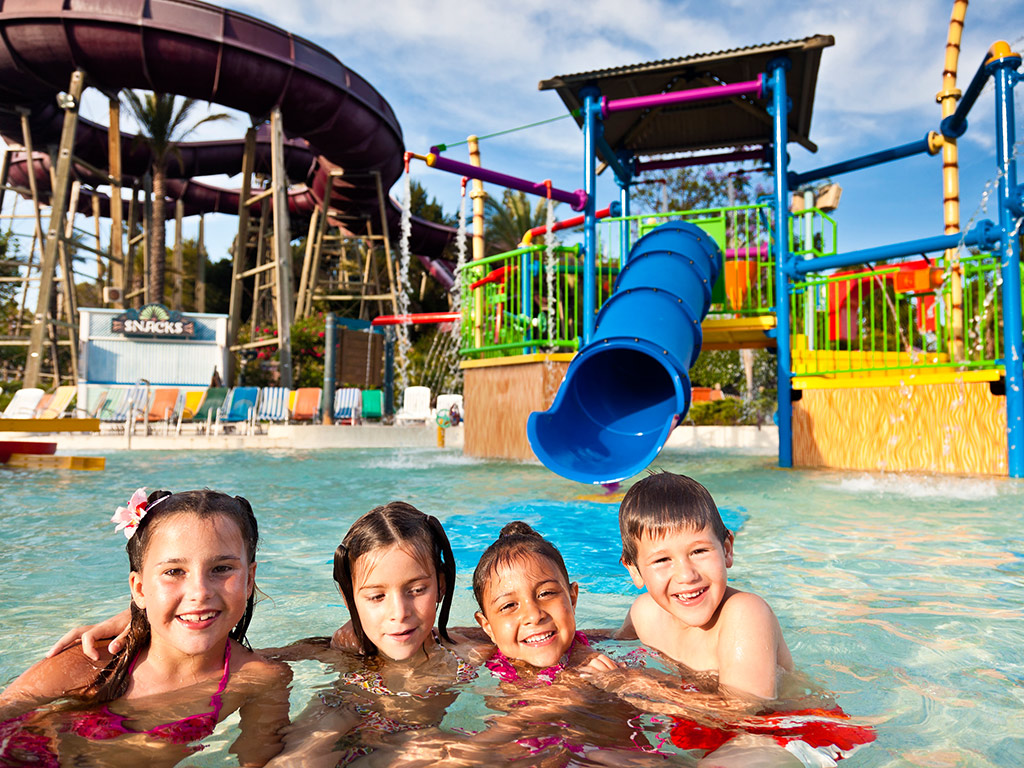 The park’s greatest innovation is King Khajuna, Europe’s highest free fall waterslide. Do not miss out on the adventure of launching yourself from a height of 31 metres down a slope of 55 degrees – you’ll reach dizzying speeds! Just as hair-raising is Ciclón Tropical, a multi-bump, fast-paced fun with changes in elevation, or Rapid Race, the six-lane racer slide to compete and see who gets to the bottom first. All this and much more in a dream setting among palm trees, huts and relaxing reggae music.