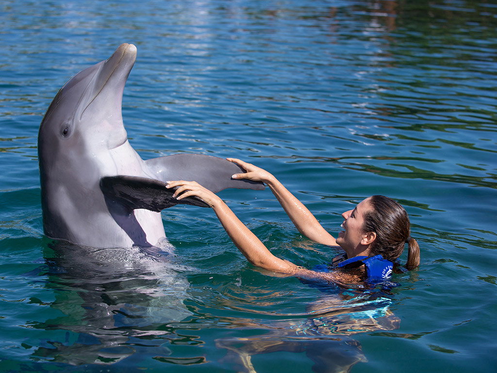Live the extraordinary experience of taking a dip and playing with dolphins on this visit to Delphinus. Located in Mexico’s paradisiacal Playa del Carmen, Delphinus is home to a variety of friendly and beautiful dolphins. It’s highly qualified programs give you the chance to live this dream desired by so many. Live the extraordinary experience of taking a dip and playing with dolphins on this visit to Delphinus. Located in Mexico’s paradisiacal Playa del Carmen, Delphinus is home to a variety of friendly and beautiful dolphins. It’s highly qualified programs give you the chance to live this dream desired by so many.Live the extraordinary experience of taking a dip and playing with dolphins on this visit to Delphinus. Located in Mexico’s paradisiacal Playa del Carmen, Delphinus is home to a variety of friendly and beautiful dolphins. It’s highly qualified programs give you the chance to live this dream desired by so many: to slip into the waters alongside a happy, smiling dolphin, an experience you will certainly not be quick to forget. Swimming with the dolphins at Delphinus can be described with many adjectives – fun, educational, moving, charming, enchanting – because it is the worldwide leader in responsible and sustainable management of dolphins. The facilities of its location in Xel-Há have a stunning vanguard design that doesn’t only make it a fun space, but also a beautiful one to be in. Also, the professionals working there have all the best qualifications and experience to ensure your time with the dolphins will be unforgettable.