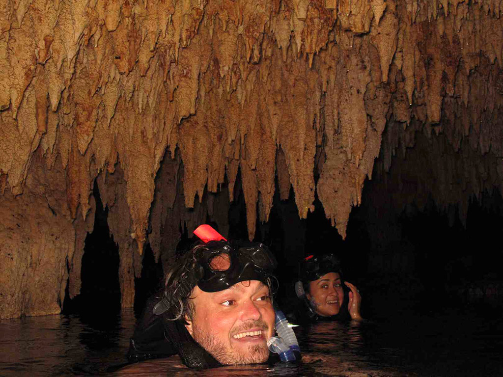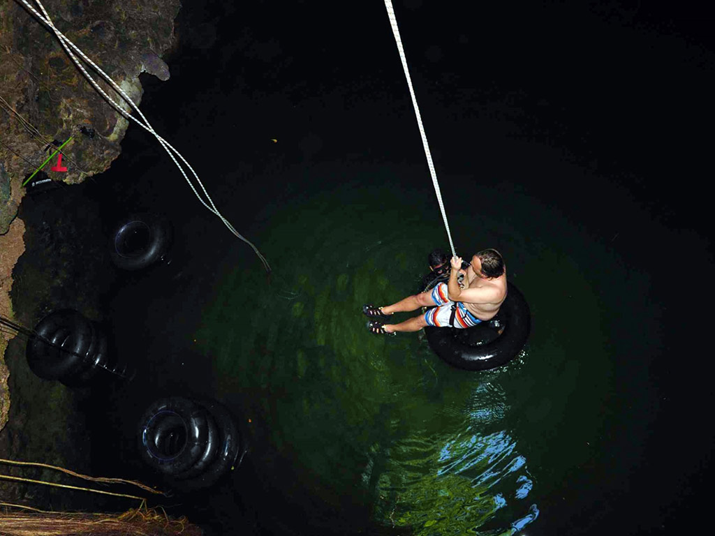The fun begins with an exhilarating jungle crossing in a 4WD all-terrain vehicle. Take in the sights and sounds of the jungle as you bump along to Rancho San Felipe, a small Maya community where the Nohoch Nah Chich cenote system is located. This is the second longest underground river system in the world and it is here that you will undertake an unforgettable snorkelling adventure into the fresh waters of the underground rivers. Swim deep inside the caverns and you can observe stunning stalactite and stalagmite formations above and below the crystal-clear water. You will then be transported to ‘Heaven’s Gate’, another entrance to this beautiful underground river system.